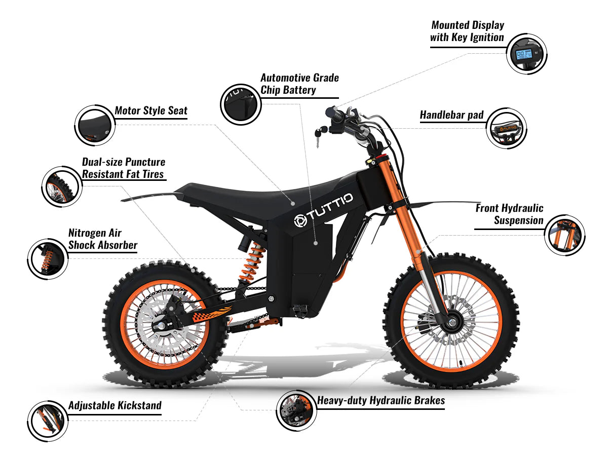 The Tuttio Soleil 01 delivers next-level performance in a compact, rugged frame built for pure excitement. Designed for both teens and adults, this electric dirt-style e-bike combines off-road power with everyday versatility — perfect for trails, campsites, or neighborhood adventures.